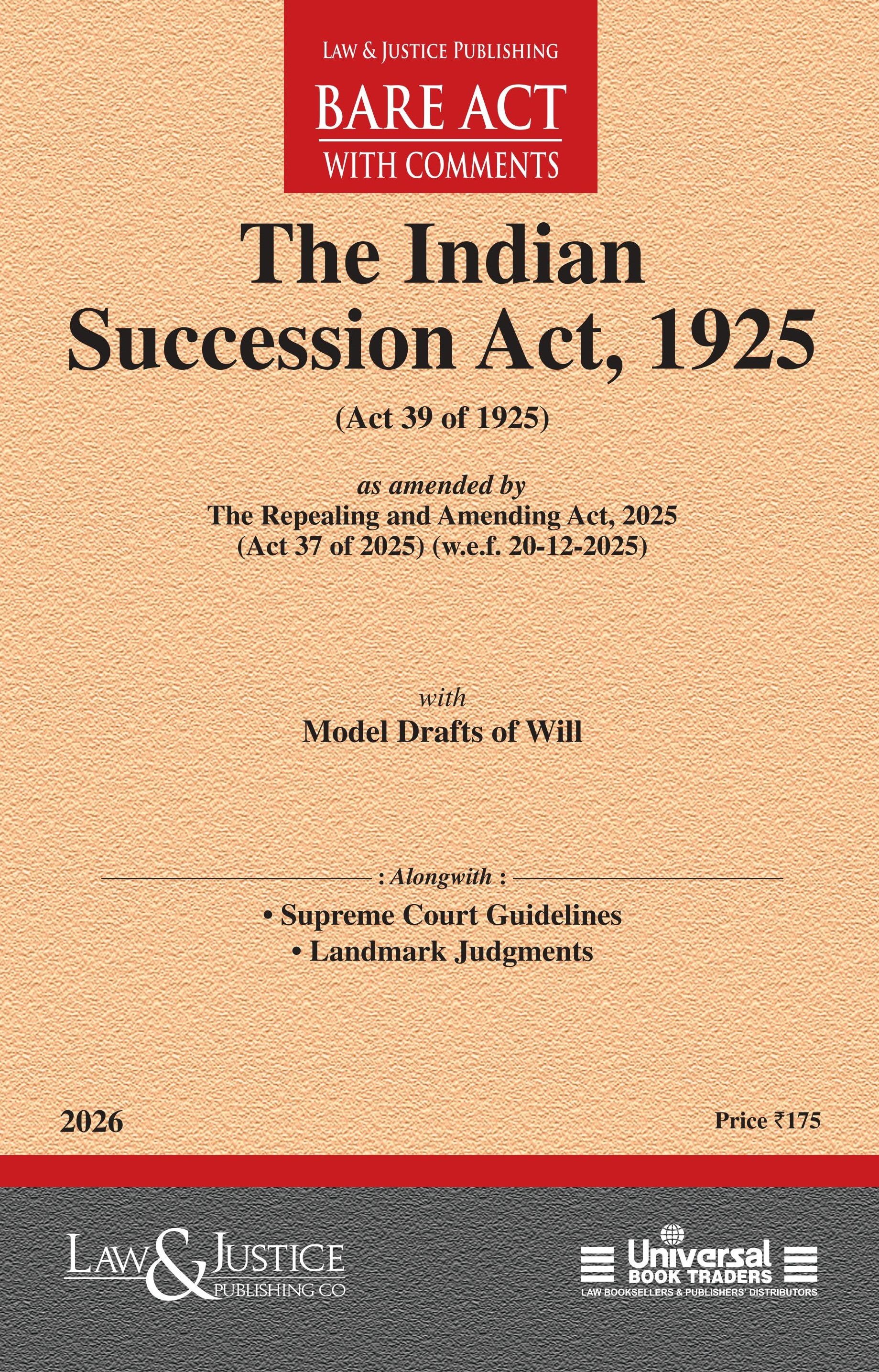 Succession Act, 1925 (as amended Act 34 of 2019) with Model Drafts of Will